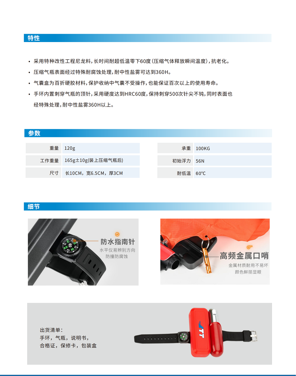 特點(diǎn):承受100-180KG浮力+替換式CO2氣瓶+帶指南針